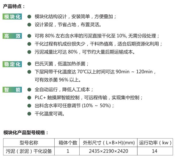 該產(chǎn)品是利用熱泵技術對污泥進行熱風循環(huán)冷凝除濕烘干的低溫干化設備。適用于污水處理廠、河涌、湖泊、紙廠、電鍍廠、印染廠等污(淤)泥的干化,解決了中國污泥亂倒亂卸的社會問題,在干化過程無需添加任何藥劑和石灰。干化后的污泥可實現(xiàn)資源化利用,用于生產(chǎn)陶粒、水泥、市政磚和育苗基質。