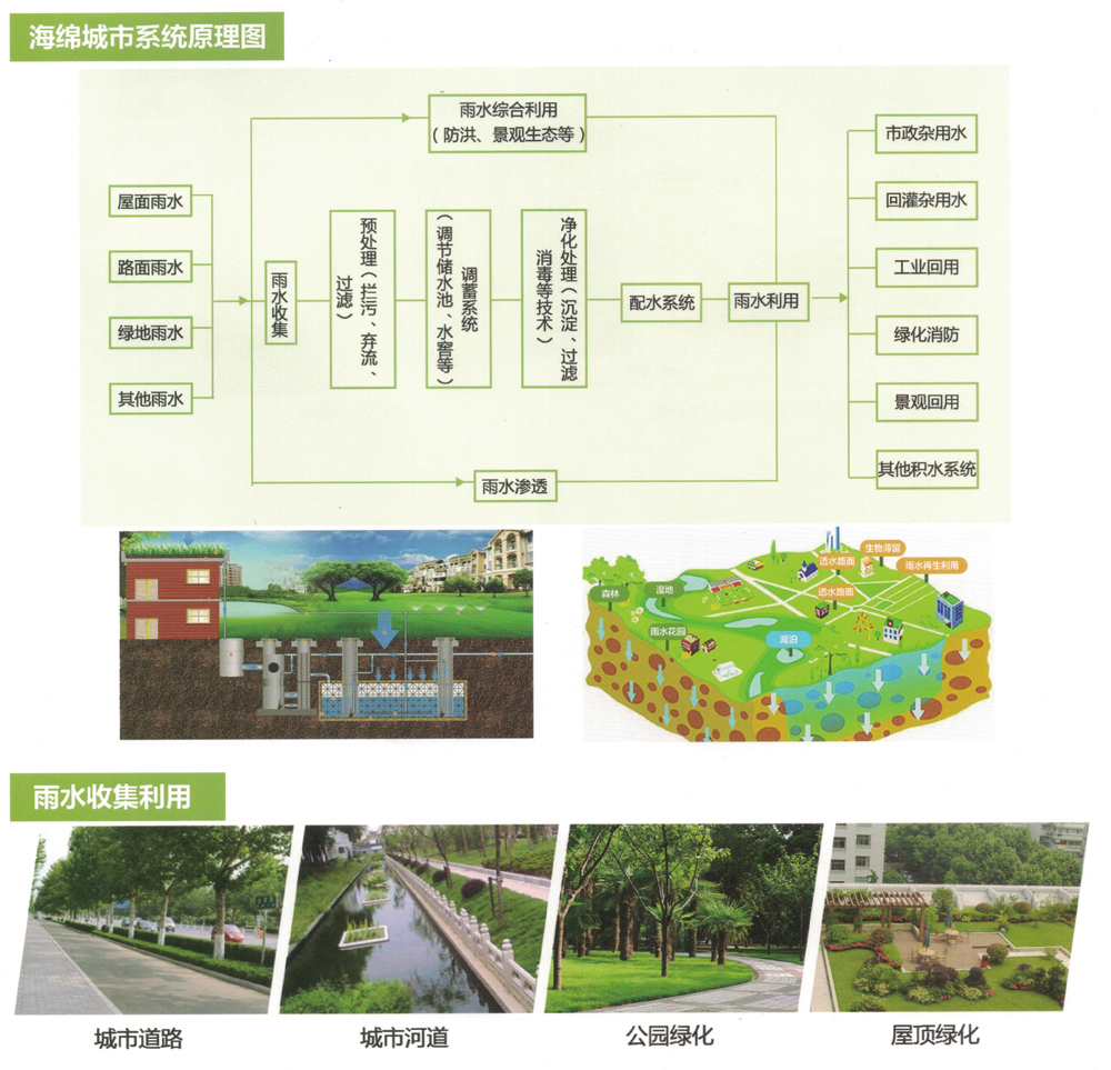 海綿城市就是運(yùn)用低影響開(kāi)發(fā)理念,下雨時(shí)吸水、蓄水、滲水、凈水,需要時(shí)將蓄存的水“釋放”并加以利用。海綿城市建設(shè)適用于城市道路、城市河道、公園綠化、城市綠道、小區(qū)花園、學(xué)校運(yùn)動(dòng)場(chǎng)、庭院綠化及屋頂綠化。